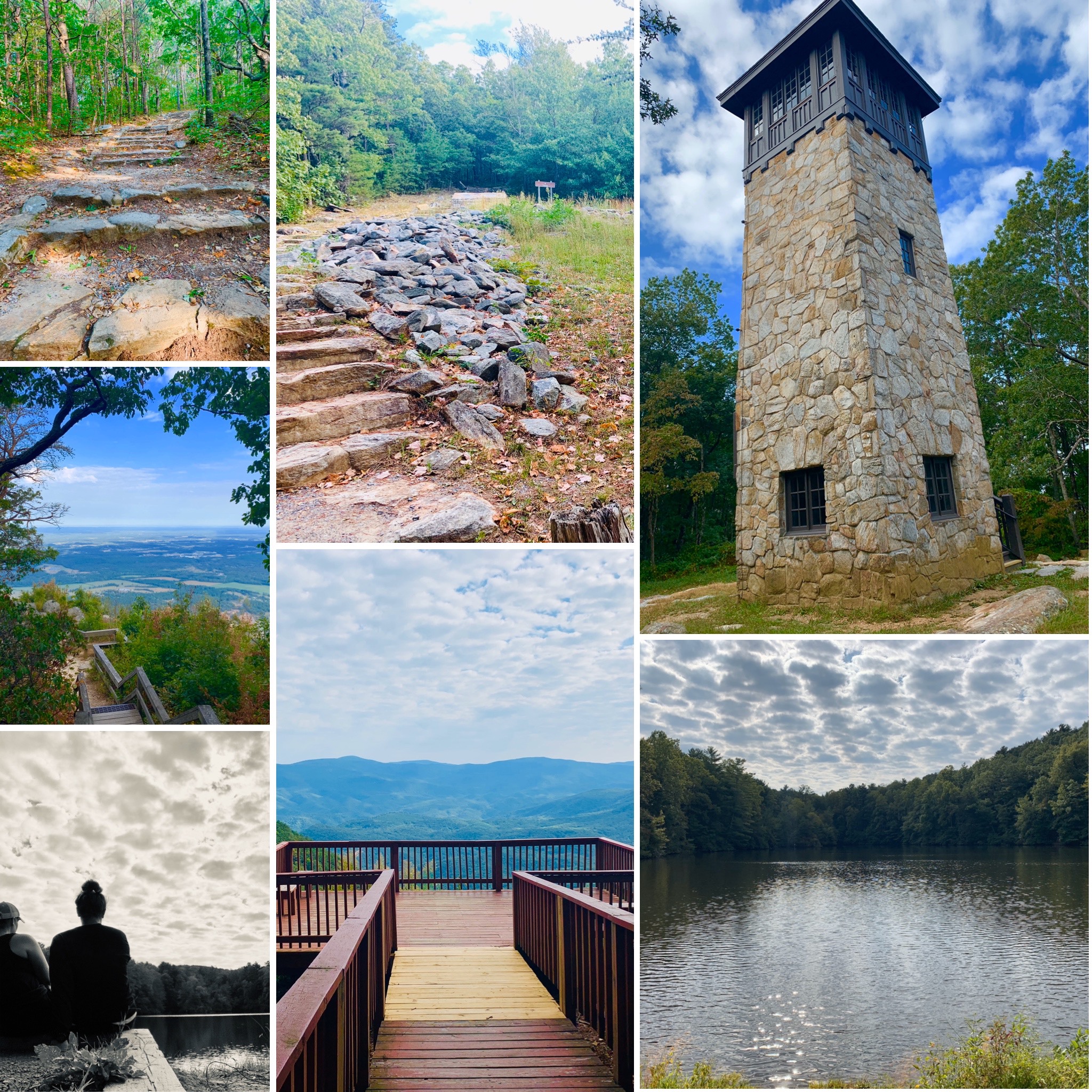 Next was the Show Stopper! Fort Mountain State Park was totally awesome y’all! It’s literally nestled in the woods on top of Fort Mountain and it’s absolutely beautiful! There are multiple hiking options, with the longest being the 8 mile Gahuti trail. All of the trails have beautiful lookout points with spectacular views. There’s also a campground and cabins, and a recreational area with a beach for the warmer months. If you’re a history buff be sure to check out it’s prehistoric Stone Wall and the Fire Lookout Tower that was constructed in the 1930’s, so cool! We could have stayed there all day, or all weekend for that matter!