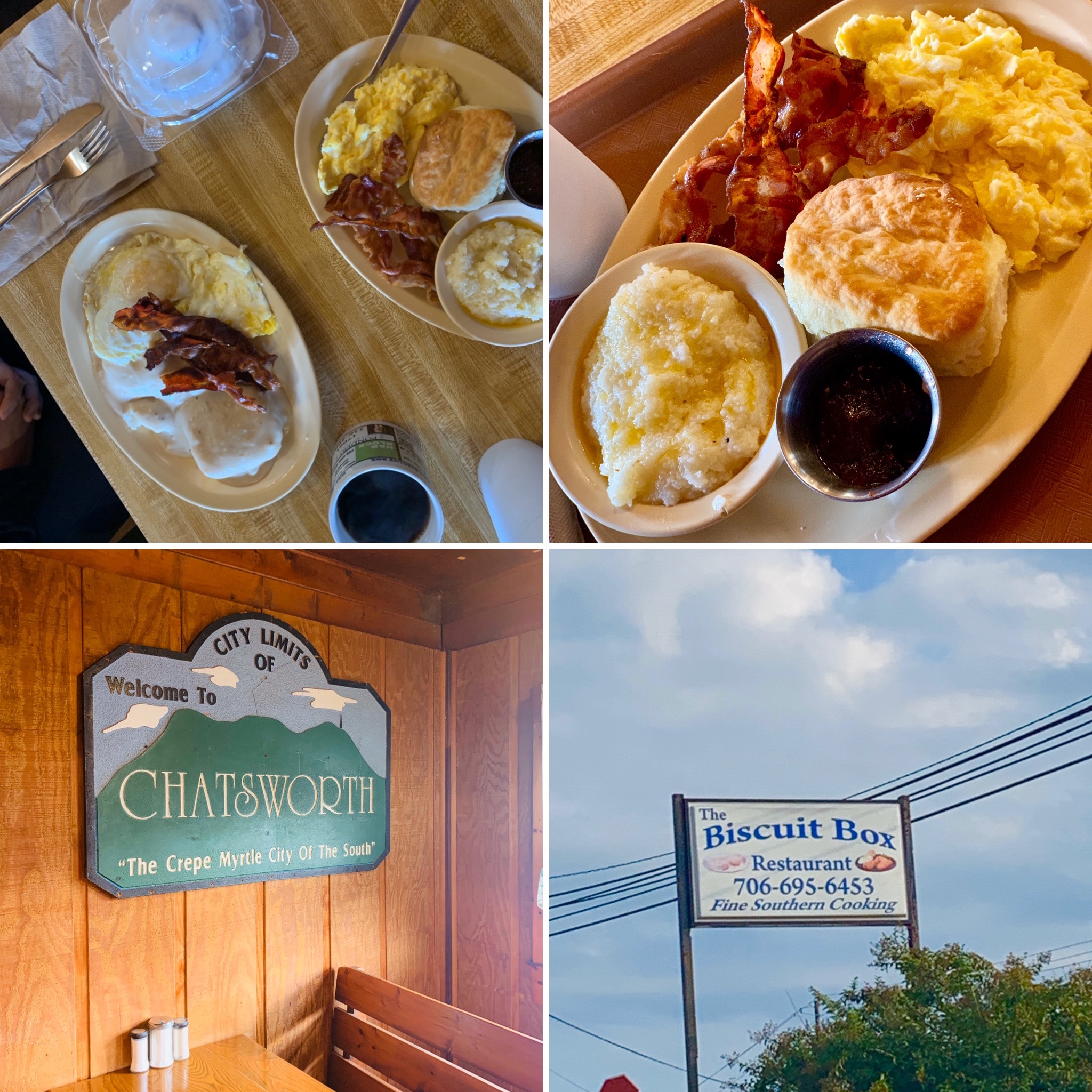 To start the day we swung by a local breakfast favorite near downtown Chatsworth, The Biscuit Box. They had us at biscuit, but what we found inside was so much more! A huge breakfast menu with way more than just delicious, homemade, fluffy, buttery biscuits. They had cooked to order breakfast platters made by a bunch of sweet southern ladies that filled our bellies and our hearts. The rustic decor inside was cozy and warm, and made us feel like we had stepped right back into our Nana’s kitchen. They also serve lunch, so make sure to check out The Biscuit Box if you’re in the area.